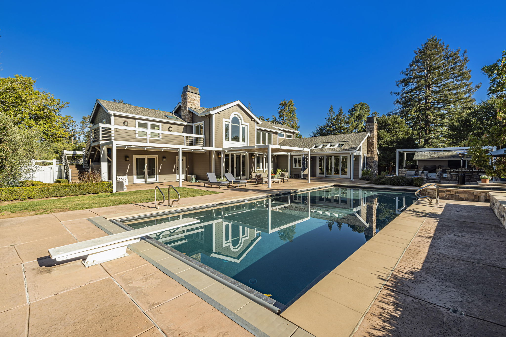 Step into elegance and resort-style living in this stunning estate, ideally situated in one of Silicon Valley’s most coveted neighborhoods, just moments from prestigious Pinewood School. The home’s timeless elegance, and light-filled interior welcomes you with grand entertaining spaces, a refined library, and a chef’s dream kitchen. The luxurious owner’s suite opens to a romantic sunset deck—pure bliss. Boasting 6 bedrooms and 7 baths on a rare 1-acre level lot, this home is designed for both comfort and style. Outside, indulge in your own private paradise with an outdoor kitchen, sparkling pool, and space for a pickleball court.