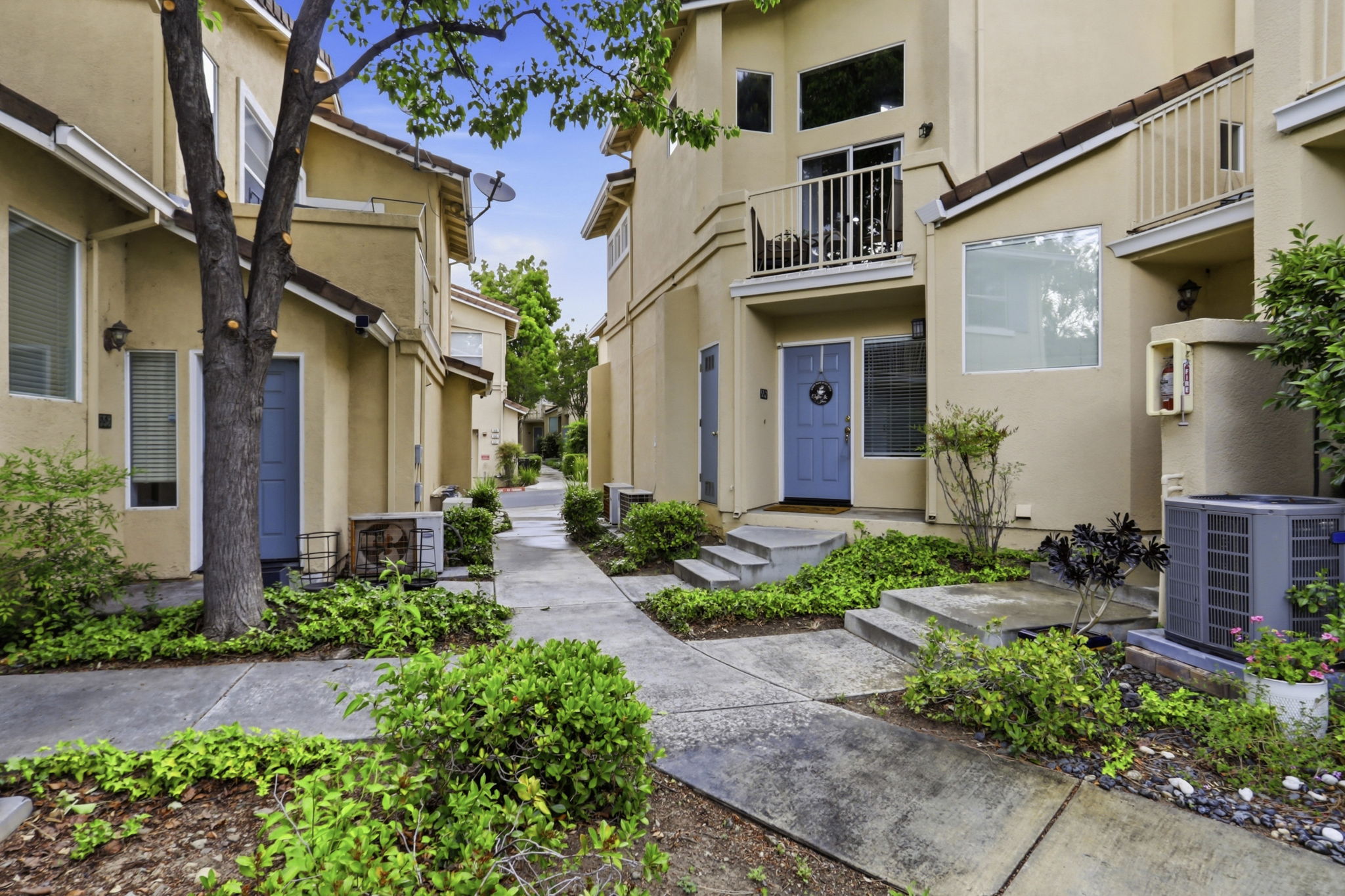 Located in the highly desirable Communications Hill community, this 3 bedroom, 3 bathroom home offers 1,443 sq ft of stylish living space with a bright, open layout and tasteful updates throughout. The living room makes a strong first impression with soaring vaulted ceilings, abundant natural light, and a sleek fireplace, creating a warm yet airy space for everyday living. The updated kitchen features quartz countertops, stainless steel appliances, rich cabinetry, a center island with bar seating, and direct connection to the dining and living areas for easy entertaining. Two bedrooms feature en-suite bathrooms, including an updated primary bath with dual sinks and a beautifully finished shower. Large bedrooms, laminate and carpet flooring, dual pane windows, and indoor comfort throughout add to the homes appeal. A private balcony offers a nice outdoor retreat, while the attached 2-car garage provides ample parking and storage. Residents also enjoy community amenities including a pool and spa. Set in sought-after Communications Hill, this home is conveniently located near VTA Light Rail, with close access to Capitol Caltrain, Downtown San Jose, Highway 87, and Monterey Road for an easy commute.